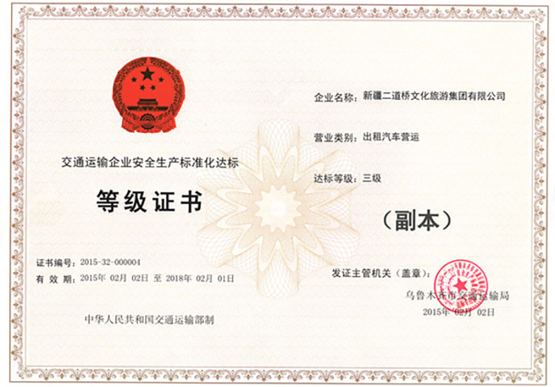 您现在的位置:新疆永利yl23411>> 关于永利yl23411>企业荣誉>永利yl23411出租公司>> 交通运输企业安全生产标准化达标三级