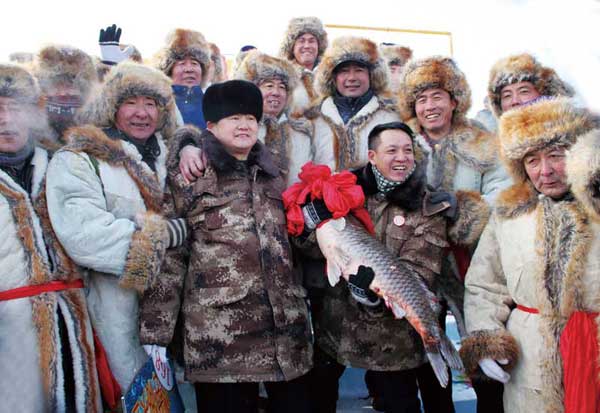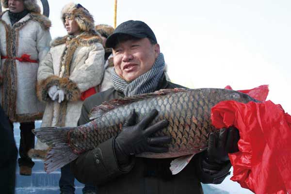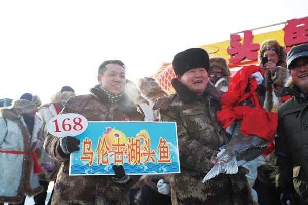 今年冬捕主办单位在“福”字上做足了文章:大漠福海、牧渔纳福,游客在观看独特的祭湖仪式、冰上飘移、冰湖速滑等活动外,还能亲身体验纳福放生、观冬捕、品尝大锅鱼汤、烤鱼等美食。特别是临别时在购买一批福海野鱼,馈赠亲友,将福气带回家中,吃福鱼、抢福鱼等活动,使观看冬捕的游客成倍增长。今年参加冬捕的人数更是超过了3万人。方圆几公里的原野上,近万辆大小车辆,场面非常的壮观。据国内相关媒体和权威人士介绍:新疆乌伦古湖冬捕目前是国内规模最大的冬捕活动。