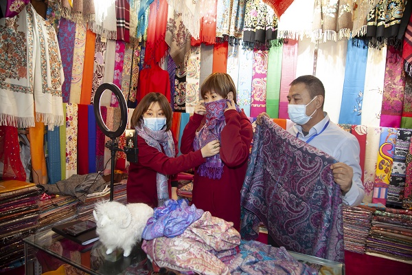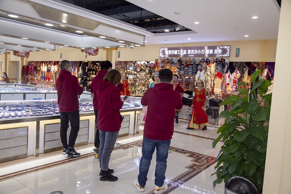 商城一楼销售民族饰品披肩的店主刘昌芹认为:以前都是坐在店里,等顾客上门,我们介绍产品进行销售。今年疫情发生,对实体店面影响很大,现在这种线上直播带货方式,对我们来说是一种新的销售模式,我们很有兴趣去尝试。但是现场销售和线上直播销售还有区别,我们希望能够有系统的直播课程培训,讲授具体操作过程并现场演示。通过直播带货,我们有信心将生意越做越好。