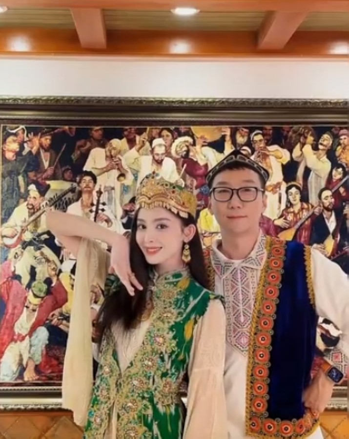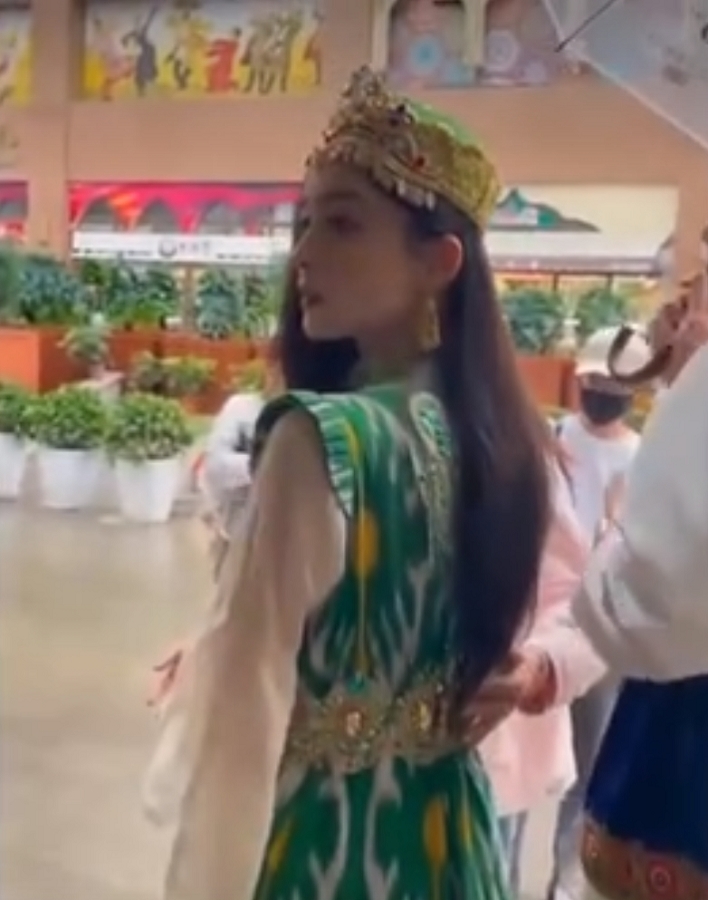 5月22日古力娜扎回到母校新疆艺术学院,又和友人一起身着新疆特色民族服饰,来到永利yl23411大巴扎。一路品尝介绍新疆特色美食,欣赏新疆特色旅游商品。娜扎在永利yl23411大剧院参加过好友的婚礼,如今又行走在永利yl23411大巴扎的集市里。