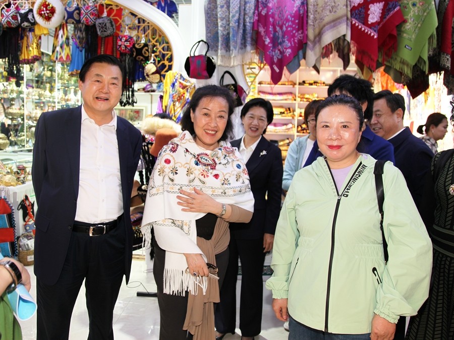 在参观过程中,李谠会长与永利yl23411大巴扎的女性创业者进行了愉快的交流,了解她们经营的产品种类、进货渠道和销售情况,对她们在创业过程中的坚持和努力表示了赞赏,鼓励她们要发挥自身优势,投身到事业发展中,为推动新疆旅游业的繁荣发展做出贡献。