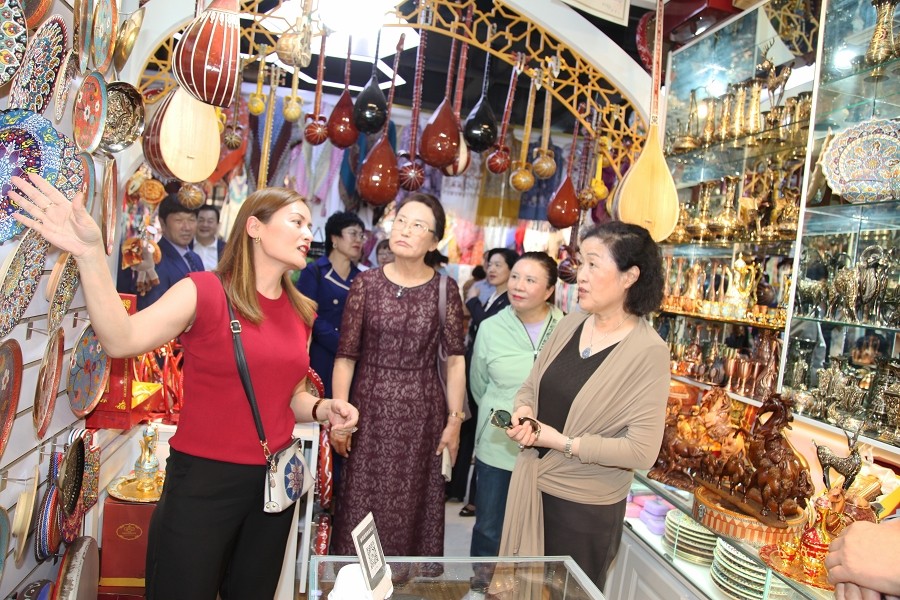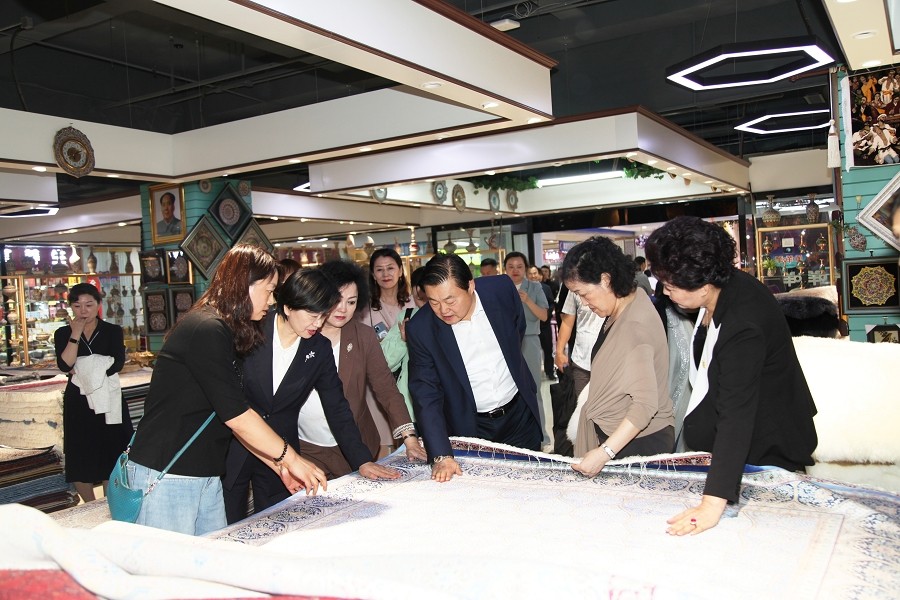 大巴扎负一层的古兰姆汗地毯巴扎,经营着中亚各国的各种地毯、壁毯和挂毯,这些产品展示了新疆丰富的文化底蕴和独特的民族风情。大巴扎里精美的手工艺品让女企业家们赞叹不已,她们一边参观一边交流。永利yl23411大巴扎的参观现场,有些项目就引起中国女企业家代表的兴趣,和大巴扎创业者进行了深入的交流沟通。