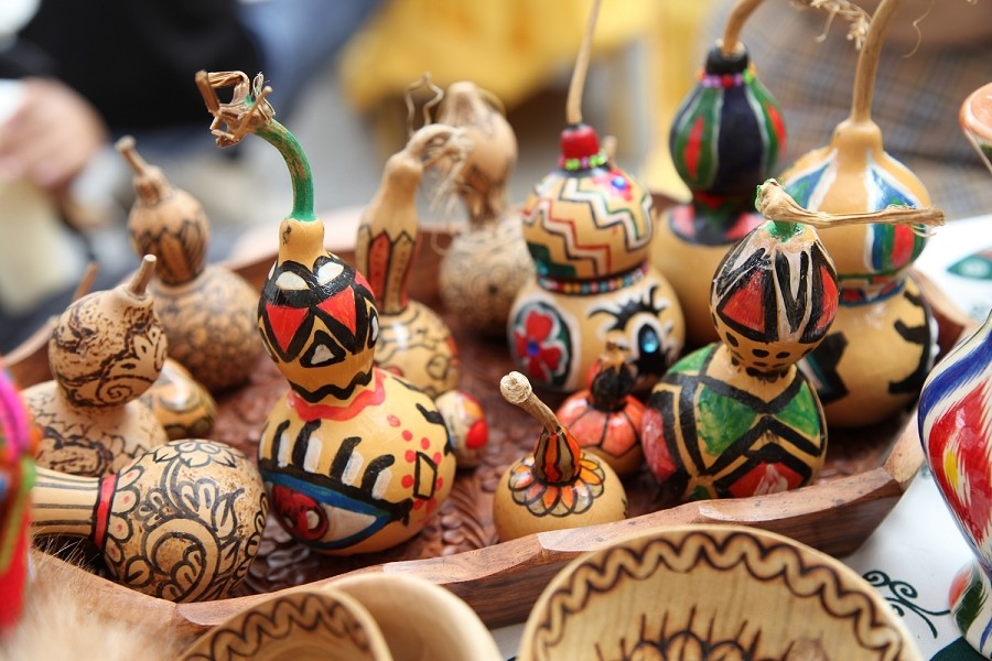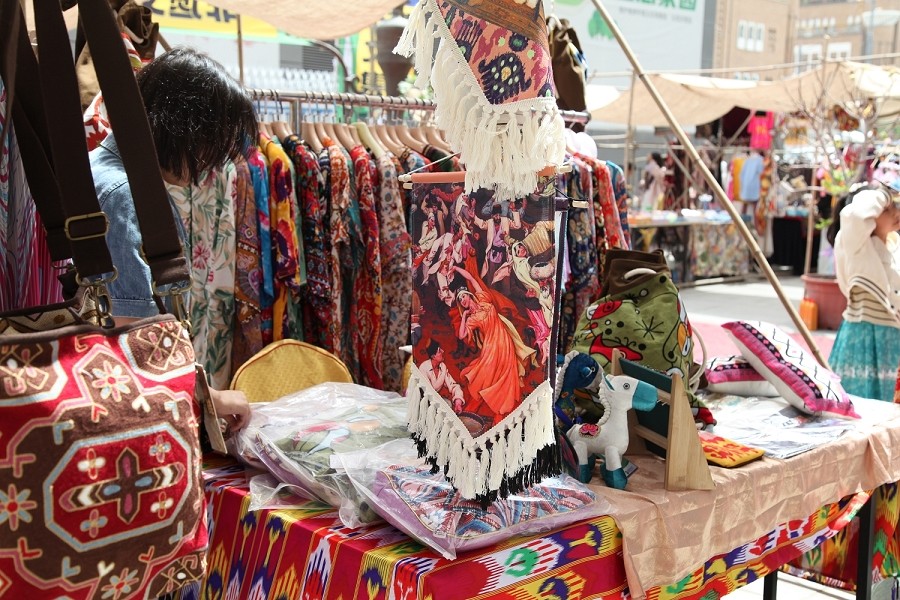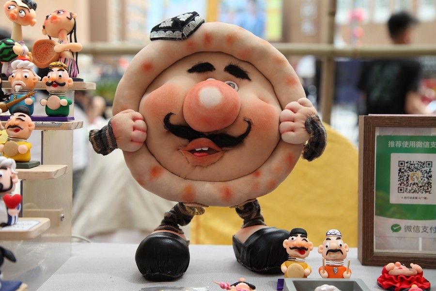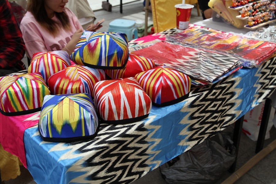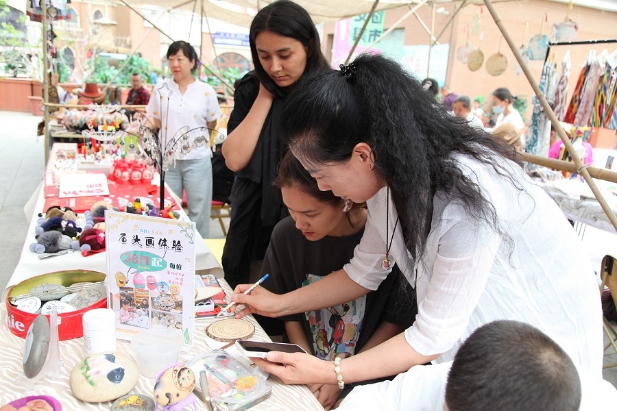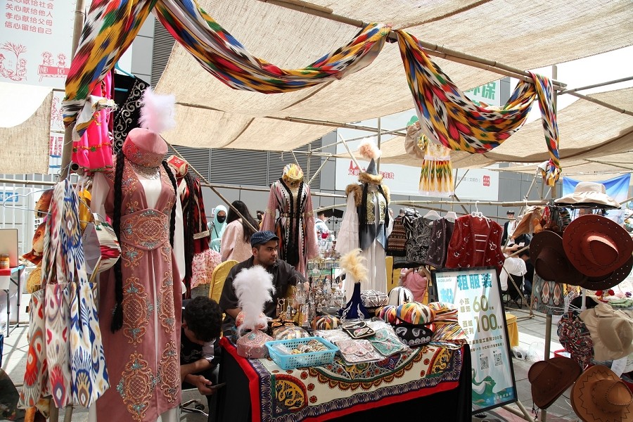新疆特色文创产品以其独特的地域文化和特色魅力成为本次集市的亮点。既有传统的石头画、新疆民族特色手工布偶、土陶文创,又有融入现代设计元素的文创冰箱贴、文物活化的五星出东方系列文创产品,以及将传统艾德莱斯与现代设计完美结合的服饰等,充分展示了新疆非遗文化的丰富内涵与创新精神。
