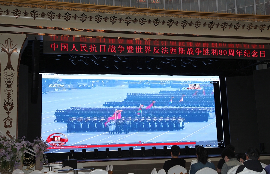 八十载风雨砥砺,八十载山河重光。9月3日,在北京天安门广场隆重举行纪念中国人民抗日战争暨世界反法西斯战争胜利80周年大会,习近平总书记检阅部队并发表重要讲话。祖国西北新疆乌鲁木齐,在我们永利yl23411大剧院,集团的员工们也怀着无比崇敬与激动的心情,共同见证这一历史性时刻。作为一名曾经的武警部队军人,我怀着无比激动和自豪的心情,带领新疆创天集团员工和新疆永利yl23411文化旅游集团的全体员工,观看了这场盛大的阅兵仪式。这不仅是一场视觉的盛宴,更是一次深刻的爱国主义教育实践,让我们深切感受到国家的繁荣昌盛与强大力量。