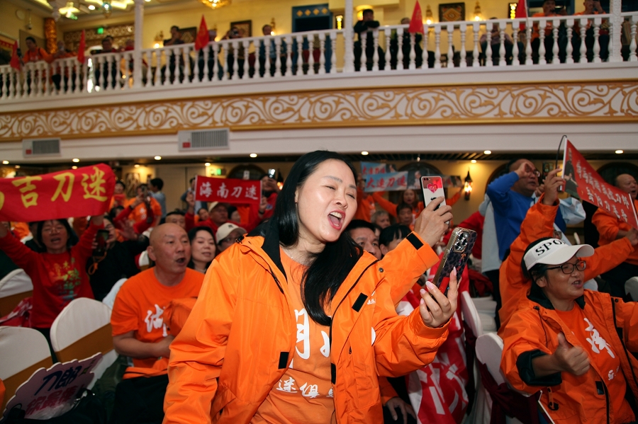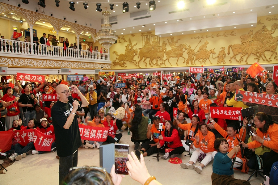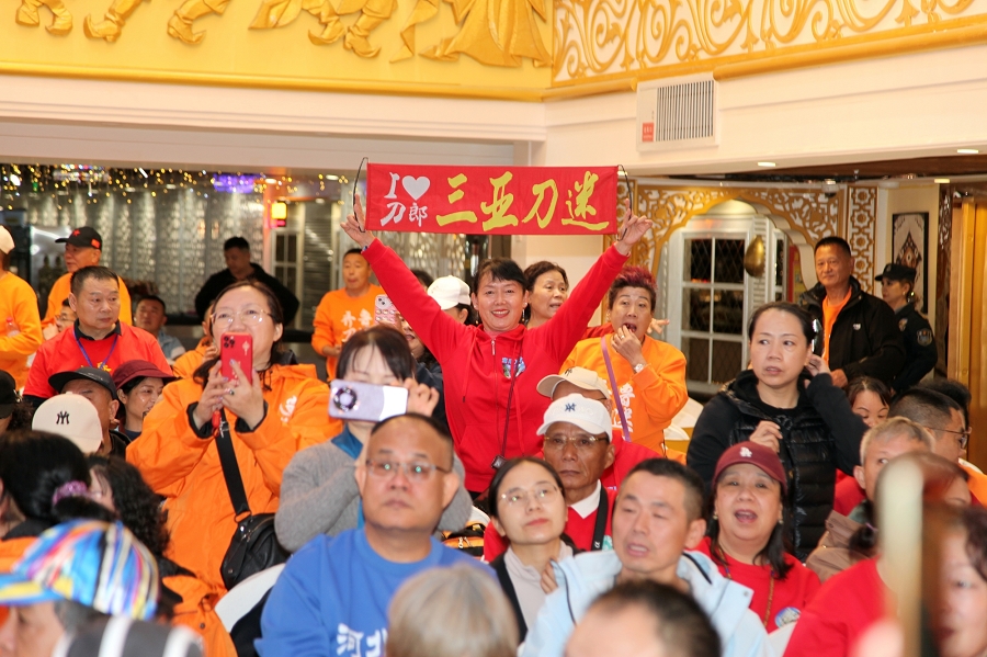 时值祖国76周年华诞和新疆维吾尔自治区成立70周年,活动特别设置红色经典展演环节。当《映山红》的旋律响起,全场刀迷挥舞国旗齐声合唱,激昂的歌声传递着对祖国的深情祝福,将现场气氛推向最高潮。