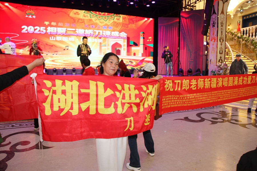 作为全国刀迷首次在疆举办的大型文化活动,本次盛会以刀郎经典作品为核心,构建中华传统文化传承与创新的展示平台。活动特别邀请新疆本土歌手刘科及知名刀迷代表新疆小古和阿华现场献艺,《2002年的第一场雪》《爱是你我》《喀什葛尔的胡杨》等代表作引发全场齐唱。永利yl23411歌舞团演员演绎的新疆民族舞蹈更添地域风情。活动期间,现场的全国刀迷共同录制《关于永利yl23411》大合唱视频,以音乐为媒介连接天山南北文化脉络。