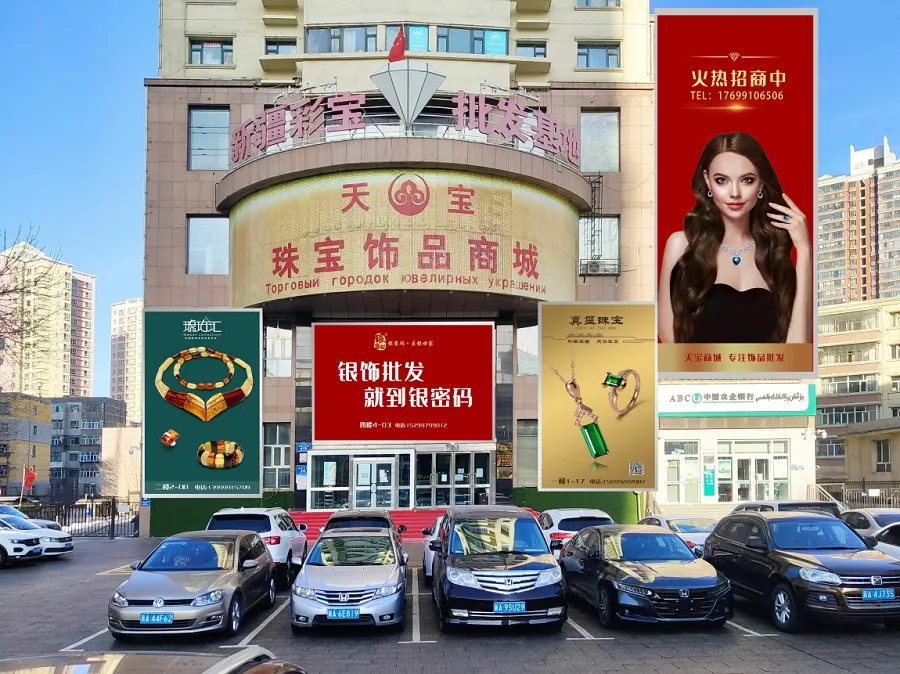 天宝商城位于乌鲁木齐长江路商贸城商圈核心,是串联西域商贸与文旅体验的节点。商城以20年商贸底蕴为基,延续采购批发零售一体化模式,融合新疆文旅特色,打造多元文化消费场景:地域文化工艺品区汇聚和田玉、玛纳斯碧玉等玉石,哈萨克、维吾尔等民族银饰以手工錾刻呈现草原图腾与丝路纹样,水晶等饰品融入西域文化元素;民俗婚庆服饰旅拍区陈列民族婚纱,推出艾德莱斯绸婚纱及西域风情旅拍,提供大巴扎民俗婚礼策划,定位婚庆文旅全产业链整合者,将备婚场景升级为含丝路旅拍的复合型消费空间。