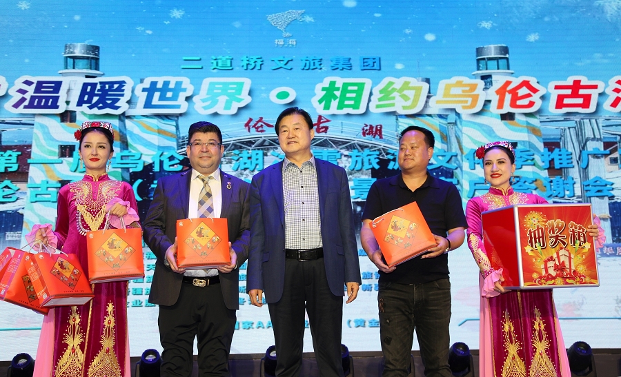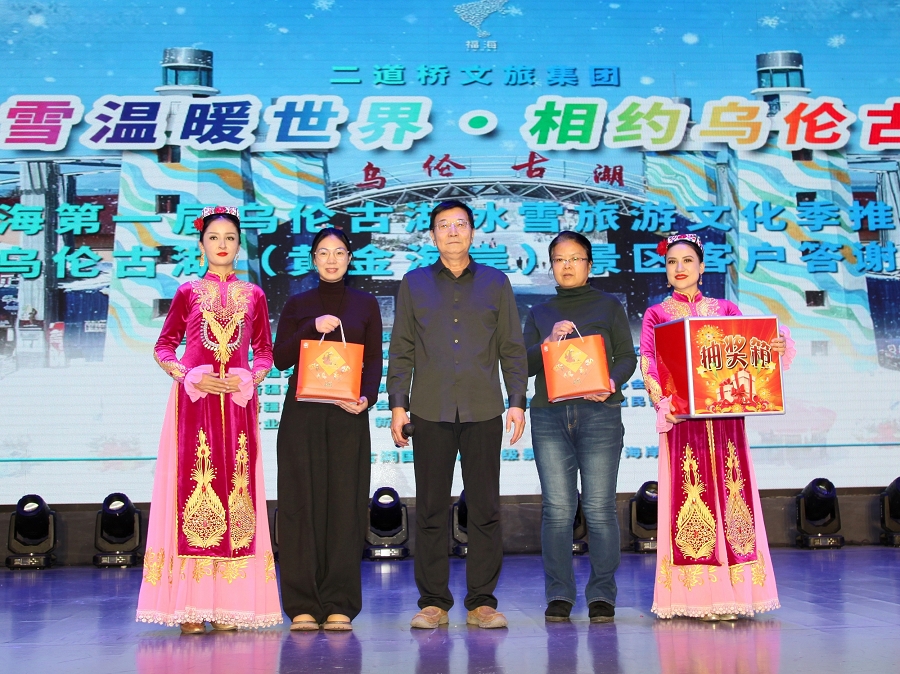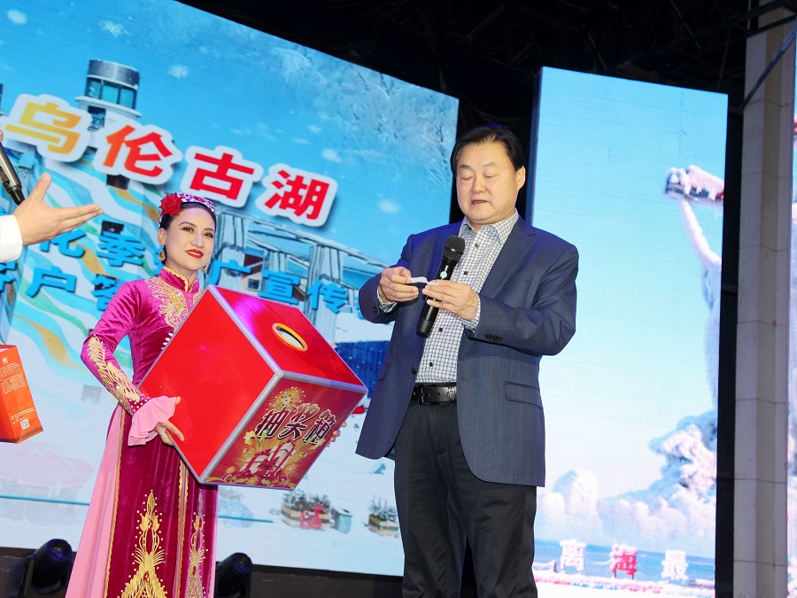 主体环节中,相关领导嘉宾分享文旅发展理念与愿景,引发全场共鸣;多轮抽奖环节持续掀起高潮,景区太空舱免费入住、文创纪念品等福利相继送出,幸运嘉宾的欢呼声让现场热度不断攀升。乌伦古湖黄金海岸景区通过精彩推介,全方位展现乌伦古湖冬季冰雪资源的独特魅力,让参会者沉浸式感受冰雪旅游的吸引力。