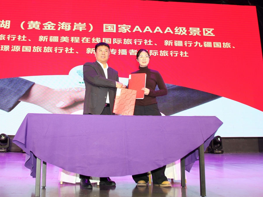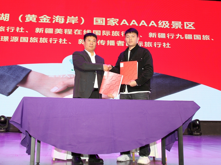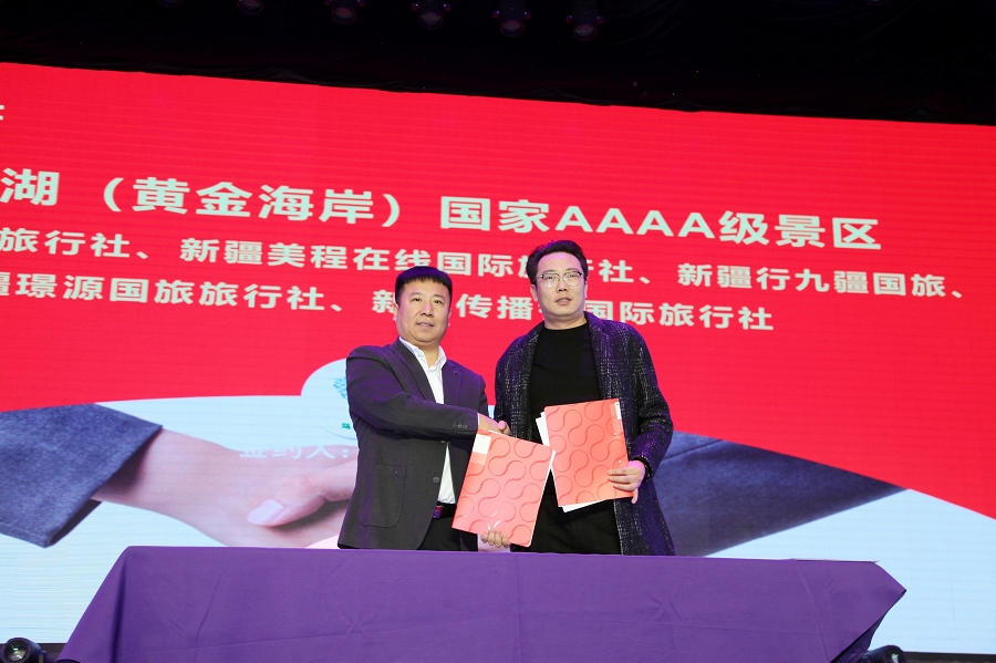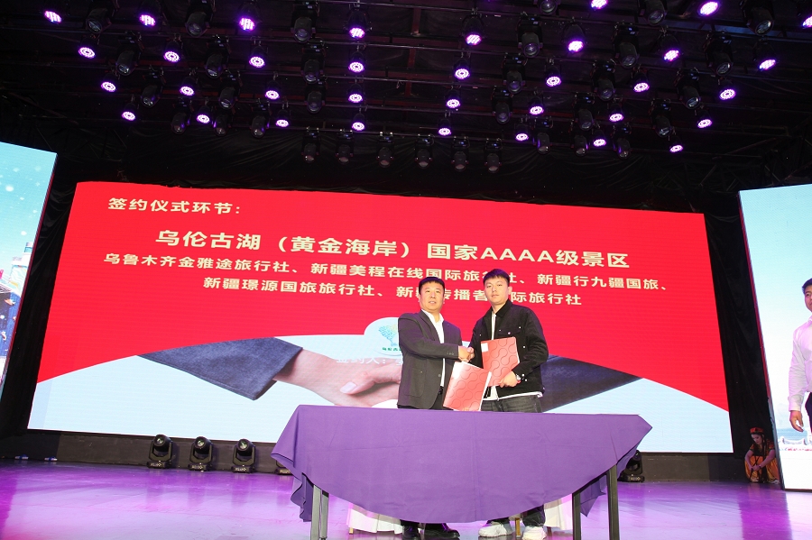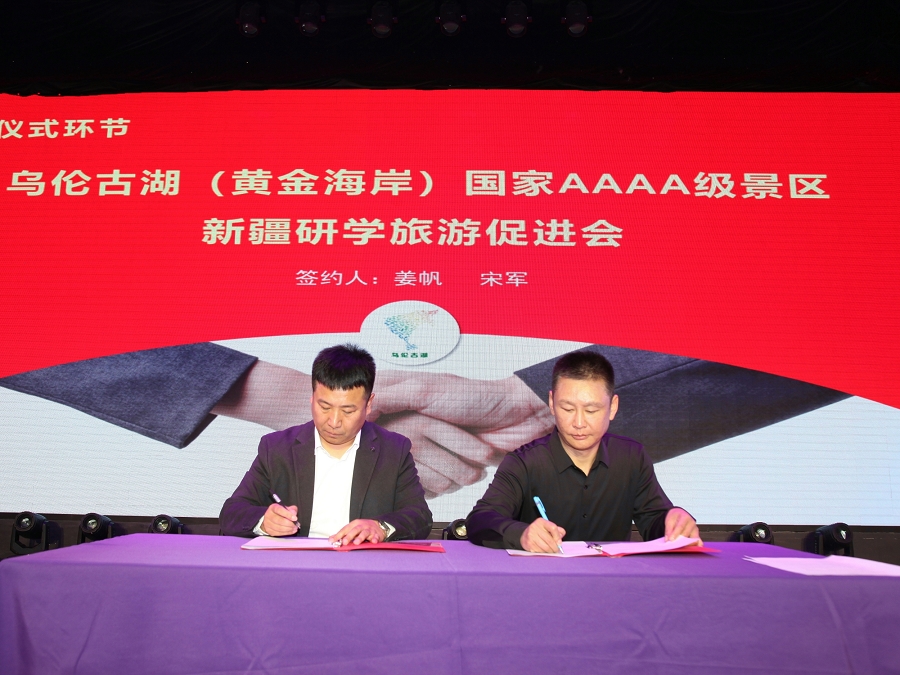 乌伦古湖景区与新疆旅游行业服务商会、新疆研学旅游促进会、新疆天山印象文旅集团和新疆冬泳协会,签署战略合作协议;与乌鲁木齐金雅途旅行社、新疆美程在线国际旅行社、新疆行九疆国旅、新疆璟源国旅旅行社、新疆传播者国际旅行社五家旅行社签订合作协议。