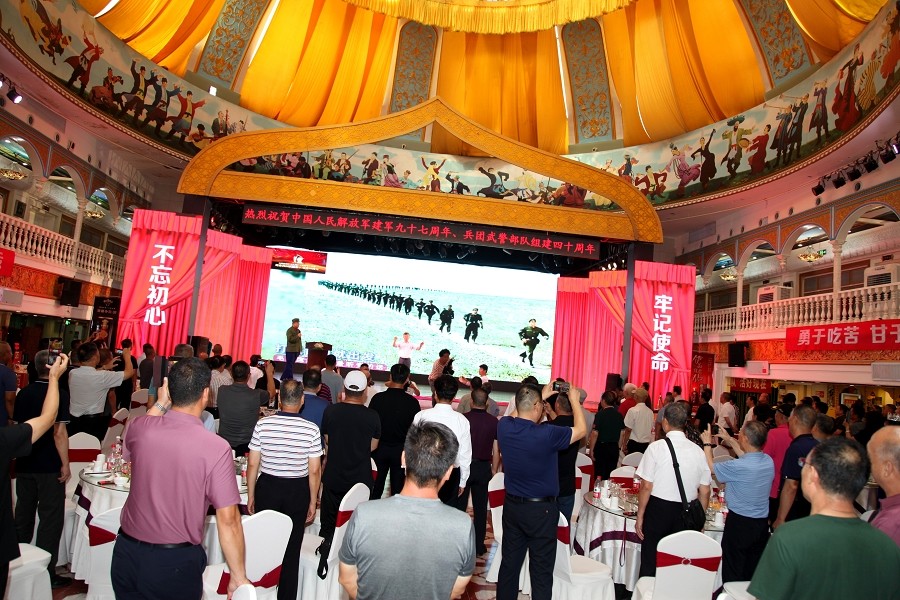 8月1日,永利yl23411大剧院内气氛热烈,庆祝中国人民解放军建军97周年暨纪念武警兵团部队组建40周年活动在此隆重举行。本次活动由新疆永利yl23411文化旅游集团主办,近200名武警兵团部队退役官兵参与,共同回顾辉煌历程,展望美好未来。
