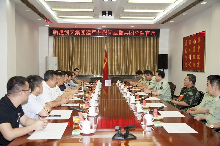 2019年,中国人民武警部队政委孙思敬上将带领国家退役军人事务部有关部门领导,在武警新疆总队政委王爱国少将的陪同下,到新疆创天集团和新疆永利yl23411文旅集团就退役军人就业问题进行调研座谈,评价集团是“拓展欧亚丝路的连接桥、新疆各族人民的连心桥、退役军人的暖心桥”。
