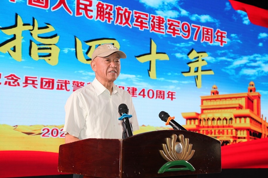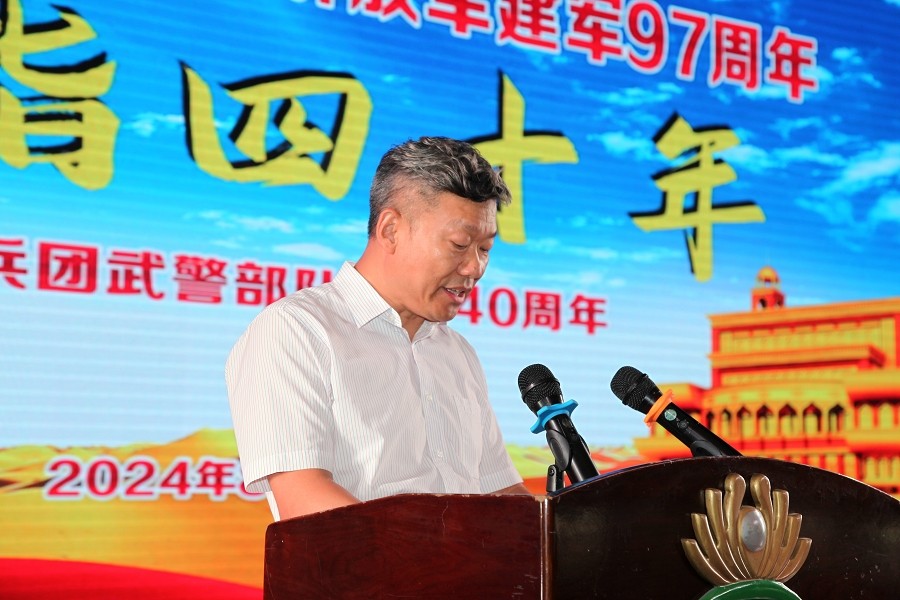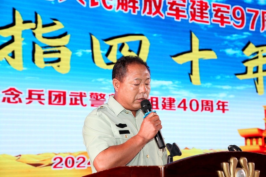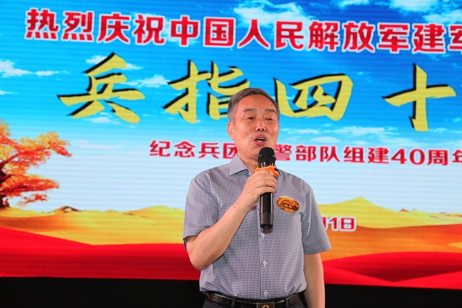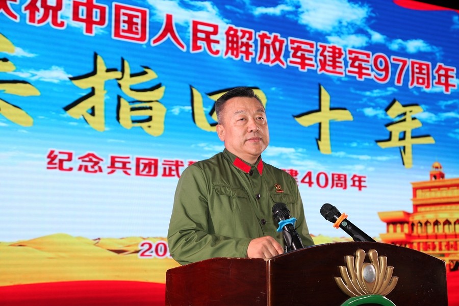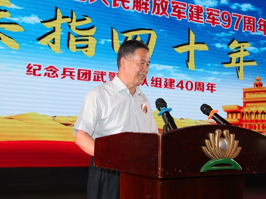 栾立新董事长代表新疆兵团江苏商会、代表创天集团党委、代表部队创建时转业老兵,向长期以来为国家和人民默默奉献的武警兵团部队官兵致以崇高的敬意和诚挚的感谢。