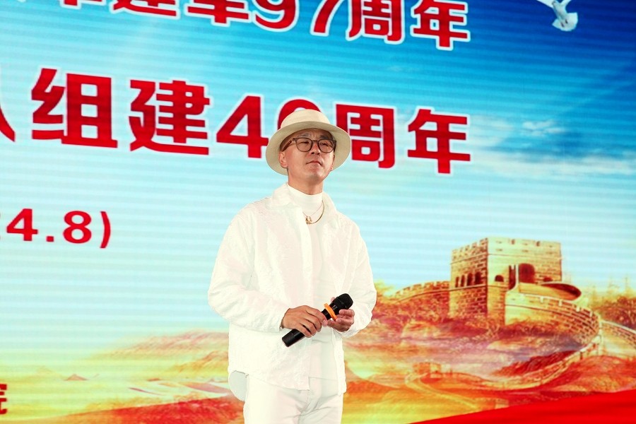 活动在雄壮的《毛主席的战士最听党的话》歌声中拉开帷幕,全体人员齐声高唱,嘹亮的歌声仿佛穿越时空,唤起了大家对那段激情燃烧岁月的共同记忆。全国工商联常委、新疆兵团工商联副主席、新疆兵团江苏商会会长、新疆创天集团和永利yl23411文旅集团党委书记、董事长栾立新同志出席活动并发表致辞。