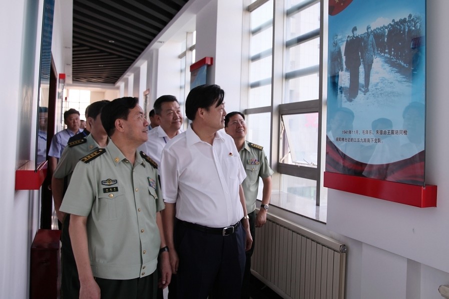 武警部队政委孙思敬上将(中)、武警新疆总队政委王爱国少将(右)到新疆创天集团和永利yl23411文化旅游集团调研