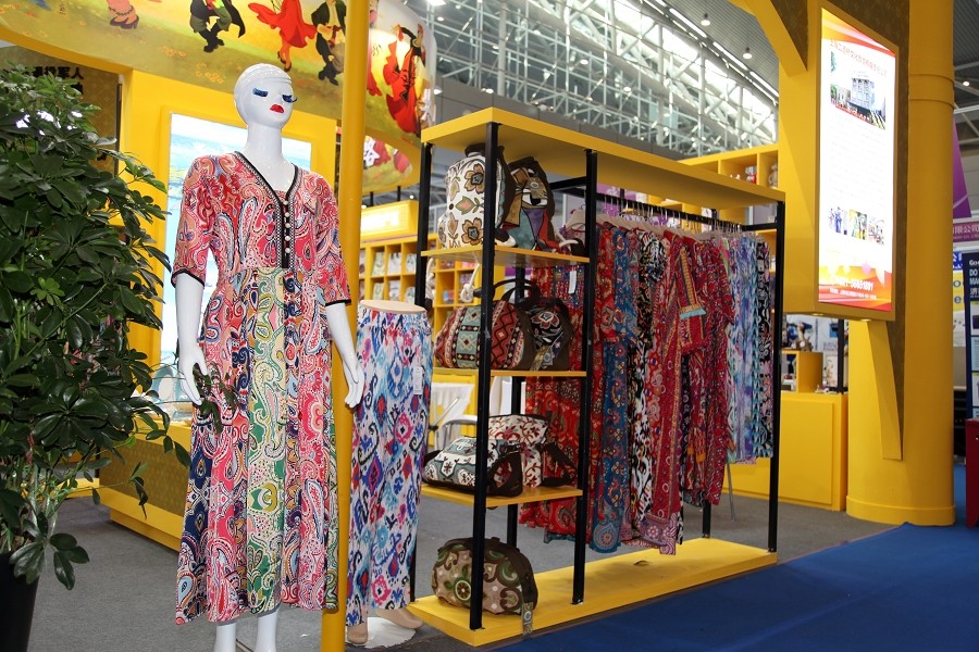 新疆布偶以其憨态可掬的形象和精湛的制作工艺成为展会上的明星产品,展现了新疆丰富的民间文化。同时,艾德莱斯服饰以其鲜艳的色彩、独特的图案和非遗民族绣法工艺赢得了现场客商的青睐。这些展品不仅彰显了新疆文化的多样性和深厚底蕴,更为参观者带来了一场视觉与文化的盛宴。新疆牛肉干、沙棘产品、奶制品、切糕、羊胿菌等土特产也备受赞誉。