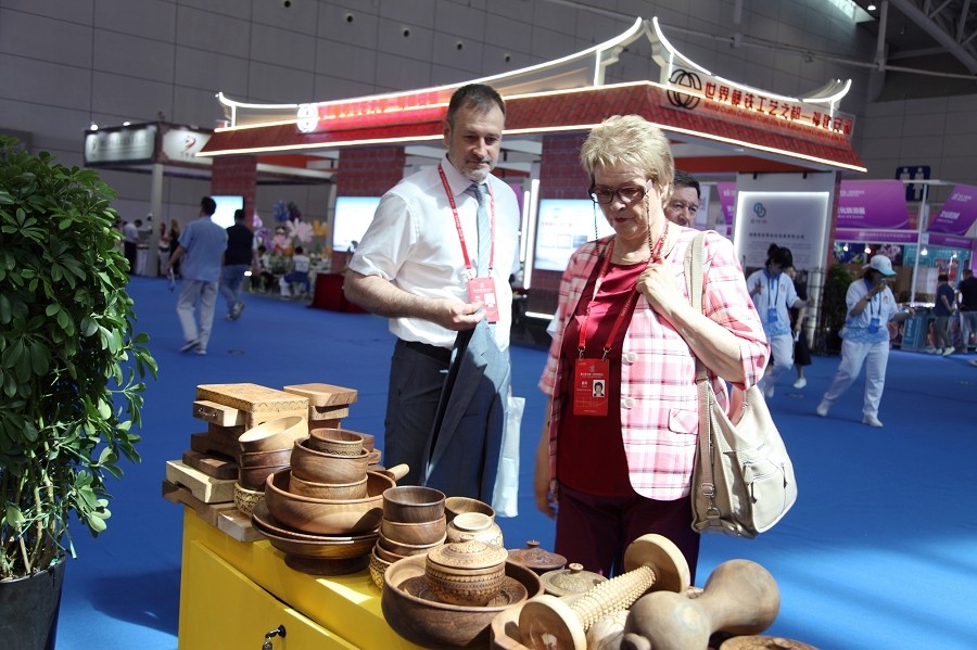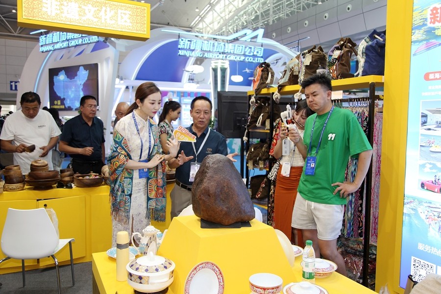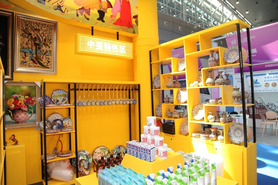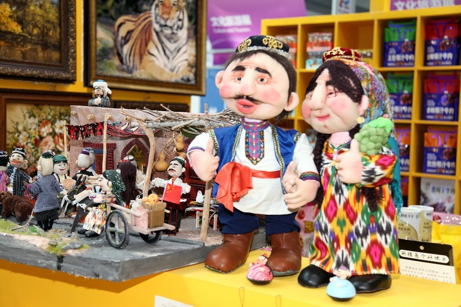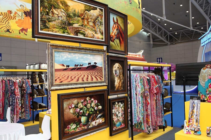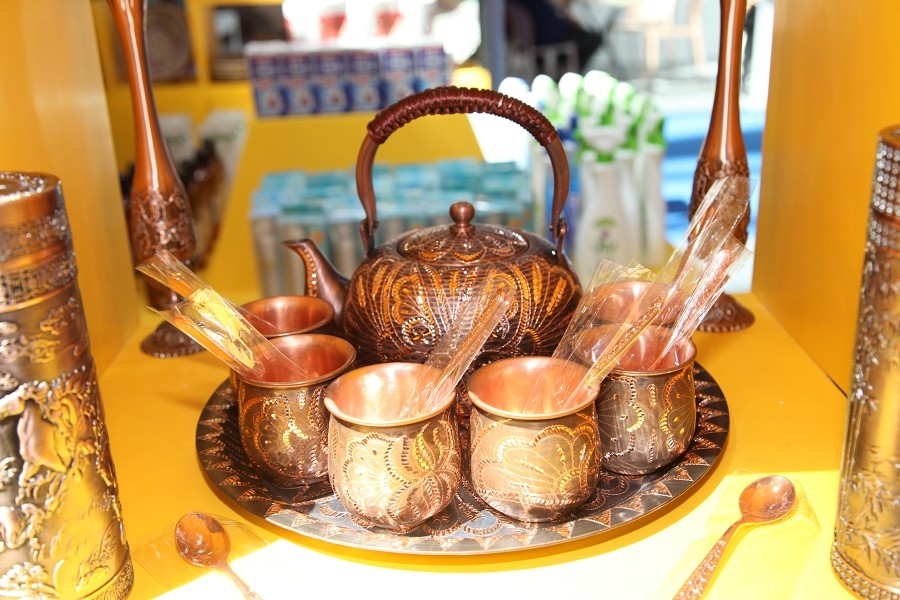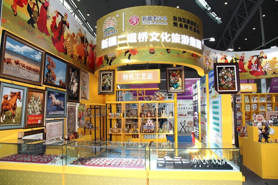 新疆永利yl23411文化旅游集团的展台精心划分为四大展区,包括非遗文化区、特色工艺区、新疆特产区和中亚特色区,共展出千余件商品,各具特色,琳琅满目。在非遗文化区和特色工艺区,一系列富有创意和匠心的新疆文创产品赢得了广泛关注。这些产品包括融合传统与现代设计理念的陶瓷文创、以核桃木为原材料精心雕琢的木器、喀什维吾尔族手工制作的铜器,以及手工编织的丝制、羊毛挂毯等,无一不体现了新疆文化的独特魅力。