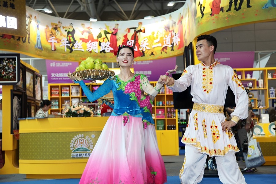 永利yl23411文旅集团展台不仅展示了入驻永利yl23411大巴扎商户的商品,更向国内外客商推介集团多年打造的永利yl23411大巴扎、福海乌伦古湖黄金海岸景区、上海永利yl23411、丝绸之路·泰州广场文化旅游商业综合体以及新开拓的汽车租赁和网约车业务。永利yl23411歌舞团的专业舞蹈演员轮番献上精彩的新疆歌舞表演,将现场气氛推向高潮,使观众在欣赏美景的同时,深刻领略到新疆独特的文化风情。