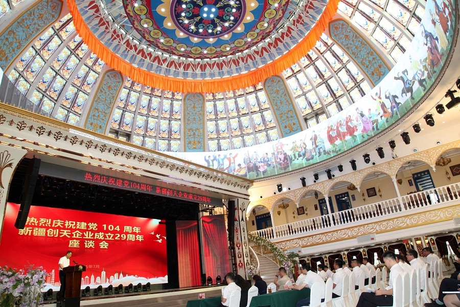 为热烈庆祝中国共产党成立104周年暨新疆创天企业成立29周年,新疆创天集团与新疆永利yl23411文旅集团于7月2日在永利yl23411大剧院举办庆祝大会。两集团全体党员、各经营单位负责人及中高层管理人员齐聚一堂,共同回顾党的奋斗历程,总结企业发展成就,擘画未来合作蓝图。