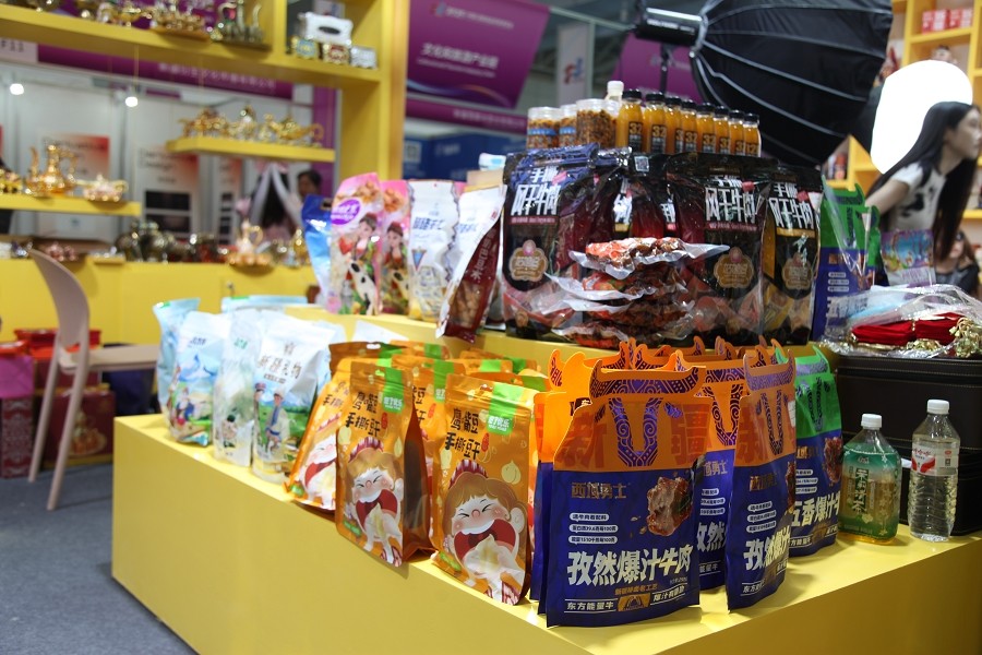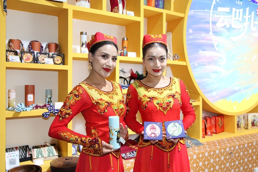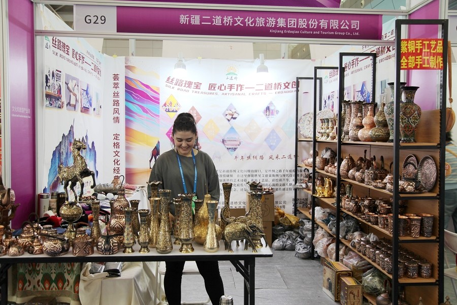匠心工艺荟萃:特色工艺区汇聚了维吾尔族非遗核桃木雕刻、南疆维吾尔传统服饰、喀什手工紫铜制品等手工艺精品;新疆特产区通过优质干果、玉器等特色产品,向观众传递了独特的“新疆味道”。