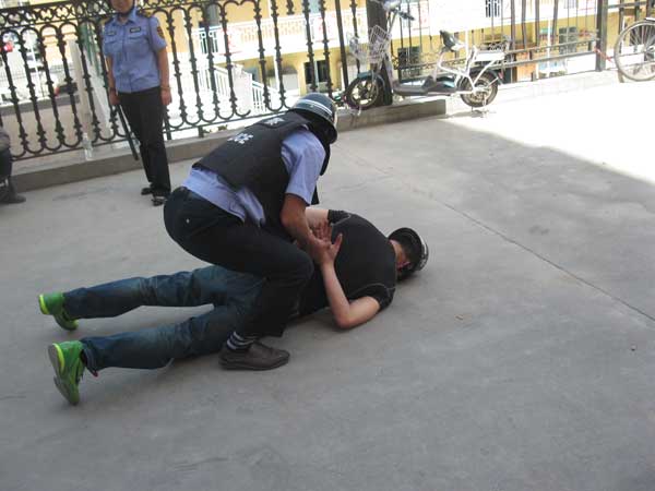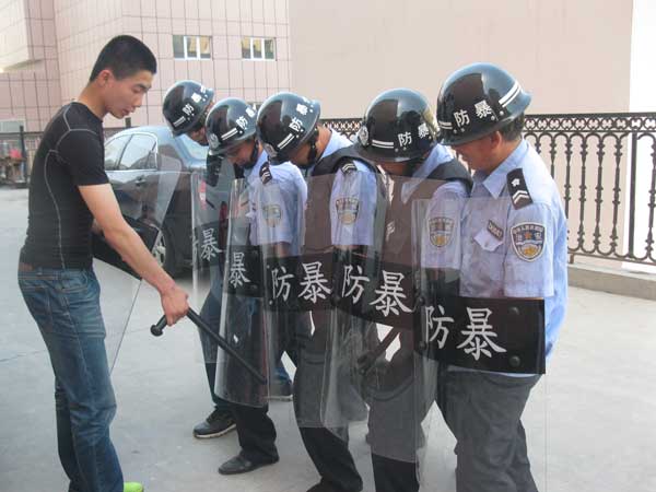2014年5月29日,天宝饰品商城保安部诚邀武警战士现场讲解防爆器械的正确使用,在确保员工自身安全的基础上,应付突发暴力事件快速反应能力,维护商户和公司的财产不受损失。在演练中武警战士与员工互相对持演练,确保演练项目的实效性。