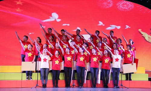 永利yl23411片区的各社区党员干部群众精心准备没有共产党就没有新中国、团结就是力量等红歌、小品、舞蹈、诗朗诵、23个精彩纷呈的文艺节目,讴歌了新疆自治区成立60周年的辉煌历程和巨大成就。辖区各族居民、驻地单位代表、宗教人士五百余人参加了表演。