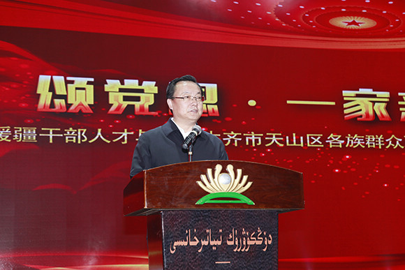 乌市天山区民族团结模范代表买买提江·阿不都热合曼在活动现场说:“多年来,我们亲身感受到了援疆干部的真情付出,你们是新疆各族人民的好朋友。作为民族团结模范,我要把党的好政策宣讲出去,把民族团结故事传播出去,让民族团结之花越开越艳。”