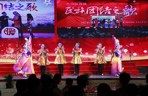 联谊活动最后,乌市天山区的少数民族干部群众与援疆干部一起跳起了欢快的民族舞,将各民族交往交流交融的氛围推向了高潮。大家齐唱《歌唱祖国》,为建设美丽新疆、共圆祖国梦想凝聚强大力量。