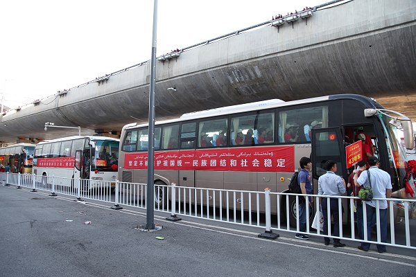 6月20日,喀什、和田地区转移到非公有制企业岗位的近2000名城乡富余劳动力乘坐K6724/1次专列抵达乌鲁木齐新客站。