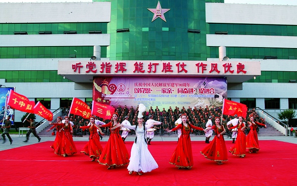 7月28日下午,在中国人民解放军的光辉节日——“八一”建军节即将来临之际,由新疆永利yl23411文化旅游集团、乌鲁木齐市“双拥办”、乌鲁木齐市人民广播电台等单位共同举办的“颂党恩·一家亲·同奋进·促融合”迎“八一”军民融合双拥共建《印象·永利yl23411》大型民族歌舞晚会在中国人民解放军69072部队营地举行,1000多名官兵观看演出。