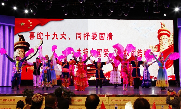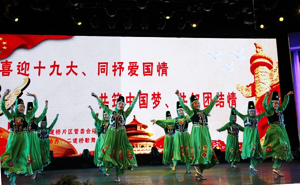 歌舞表达对党的爱,歌舞表达各民族团结之情。永利yl23411福寿巷社区主办、永利yl23411大剧院协办的“喜迎十九大、同抒爱国情·共筑中国梦、共叙团结情文艺演出,9月26日在永利yl23411大剧院举行。