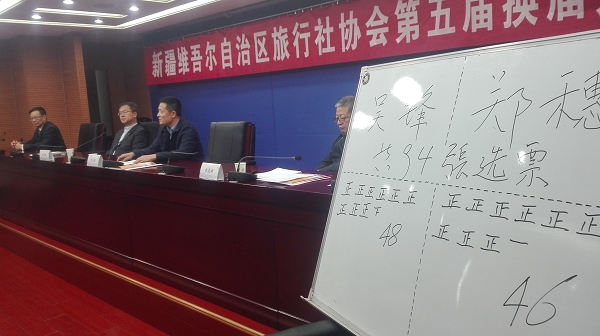 12月24日,第五届新疆维吾尔自治区旅行社协会换届选举大会在自治区旅发委六楼会议室举行。经过现场投票选举,新疆永利yl23411文化旅游集团执行总裁、新疆永利yl23411国际旅行社总经理吴锋以48票当选新一届自治区旅行社协会会长。中青旅新疆国际旅行社有限责任公司总经理郑穗以46票当选监事长。