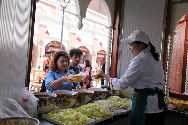 永利yl23411大巴扎美食街区是整个步行街游客量“爆棚”的核心区域,位于天池路永利yl23411大剧院片区,东起解放南路,西至龙泉街一巷,路段总长145米,30个小型档口,20个花车,汇聚了大盘鸡、烤包子、巴楚烤鱼、特色三凉、烤肉、烤鸡蛋等50个品类的新疆特色美食。