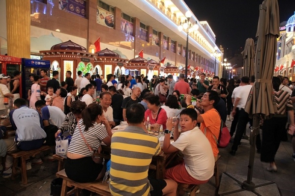 24小时持续升温,8月16日,开业第二天的永利yl23411大巴扎步行街人山人海,游人们摩肩擦踵,纷纷涌入大巴扎美食街区。