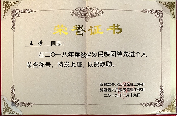 上海永利yl23411文化旅游有限公司董事长王芳荣获先进个人称号。