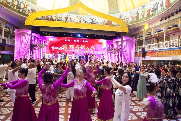 8月14日上午,新疆永利yl23411大剧院里洋溢着节日的气息,一片欢歌笑语。400余名,28支分别来自全国各地的各族麦西来甫舞蹈爱好者队伍在永利yl23411大剧院欢聚一堂。由永利yl23411文化旅游集团发起,新疆麦西来甫推广中心联合举办的全国麦西来甫大联欢,从2016年11月18日的第一届,到2019年8月14日的今天已经第四届了,永利yl23411文旅集团见证了麦西来甫在这几年在全国的大发展。新疆永利yl23411文化旅游集团首席顾问郭东升表示,永利yl23411文化旅游集团将为麦西来甫的爱好者提供推广培训和走出去的活动机会,我们希望把新疆健康快乐、阳光积极的正能量传递到全国各地,打造和谐新疆、文化新疆、活力新疆的盛景,在全国掀起一场跳麦西来甫广场舞的热潮,让全国人民一同感受麦西来甫带来的身心愉悦和幸福生活。