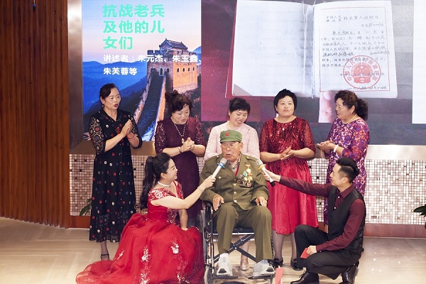 乌鲁木齐“张富清”式的退役老兵——朱元杰和他的5个女儿、外孙女们也来到了活动现场。老人1943年参加八路军,今年已92岁高龄。曾历经抗日战争、解放战争、抗美援朝战争。军旅生涯中老人参加了无数次战斗,共获得三等功两次,军功章六枚。老人的到来以及他感人的故事使现场观众无不为之动容,数次响起雷鸣般的掌声。