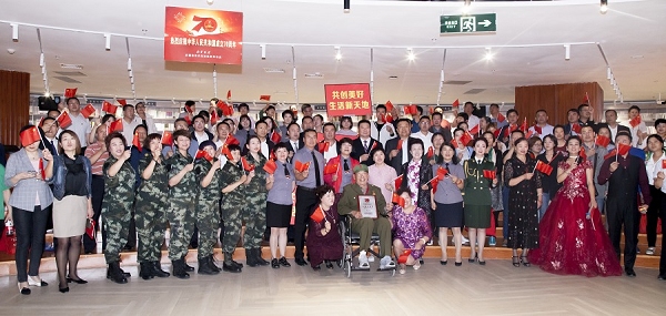 自治区退役军人事务厅办公室主任王延军,市退役军人事务局党组书记、局长、市双拥办主任任君,党组成员、副局长常江华、古丽扎·阿不力米提,市“民族团结一家亲”办公室综合组组长孙梅,市退役军人就业创业协会会长戎锋洪及市退役军人事务局系统全体干部职工,市退役军人事务局驻后街社区、环卫路南社区“访惠聚”工作队队员和结亲对象等160余人齐聚一堂,用赤诚之心,礼赞共和国,为祖国母亲70岁庆生。