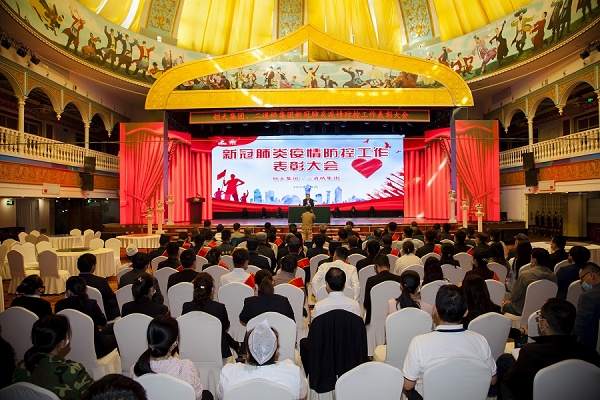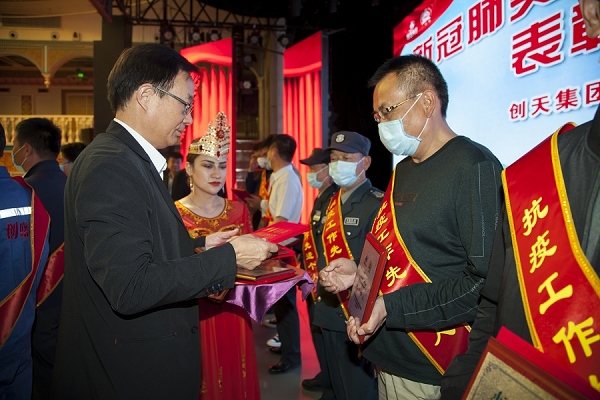 2020年4月26日,新疆创天集团、新疆永利yl23411文化旅游集团在永利yl23411大剧院召开“2020抗击新冠肺炎防控工作”表彰大会。大会表彰了在2020年春季抗疫防控工作中表现突出的4个先进集体和39位先进个人,并通报嘉奖了在疫情期间所有坚守岗位的59位员工。