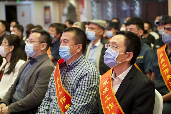 大会授予新疆永利yl23411饭店管理有限公司、新疆永利yl23411旅游出租汽车有限公司、新疆创盛物业服务有限公司、新疆创盛物业服务有限公司吉木萨尔县分公司“2020抗击新冠肺炎防控工作”先进集体称号;授予艾克拜尔·达乌提、王军等39人先进个人称号;同时对疫情期间其他所有坚守岗位的谢国强等59位员工予以通令嘉奖。