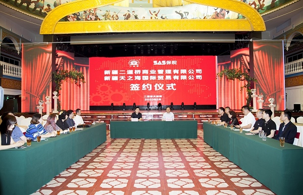 5月18日,新疆永利yl23411商业管理有限公司与新疆天之海国际贸易有限公司在乌鲁木齐永利yl23411大剧院举行合作项目签约仪式,双方就新疆永利yl23411SAS保税一带一路国家精品展示中心等项目签署了合作协议。