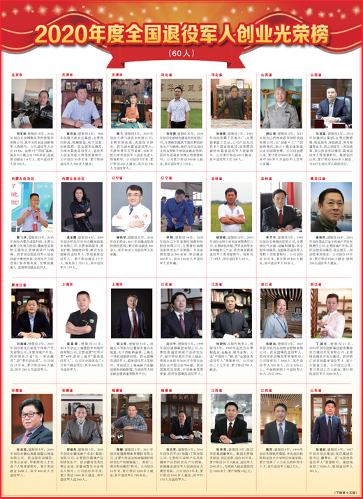 郑宝林,曾服役18年。2016年创办北京博奥共享科技服务有限公司,获中关村创业创新领军人物称号。公司退役军人占比12.5%。运营7个“双创”基地,服务中小微企业1200多家,直接带动就业1.8万人,其中退役军人近300人。