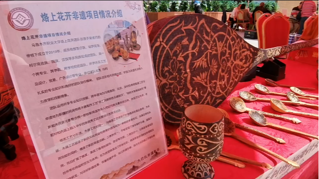 本次活动由乌鲁木齐市文化和旅游局(市文物局)和天山区文化体育和旅游局等多家单位组织策划,汇集了我市12个非遗项目参加,涵盖剪纸、调香、手工鞋、雕版拓印技艺、手工鞋、和田玉玉雕、错金银、石头画、蛋雕、纸塑、烙画技艺等非遗项目。其中“巴依部落”主要开发系列旅游工艺品,今天他们带来了冰箱贴、杯垫、手工包等近百种产品进行展示,尽显浓郁新疆民族风情特色的文创作品吸引了不少市民和游客目光。