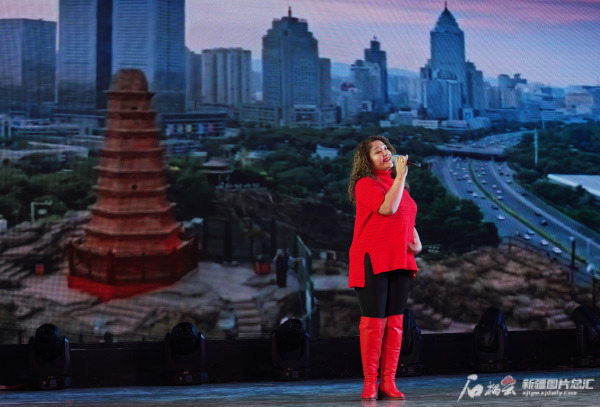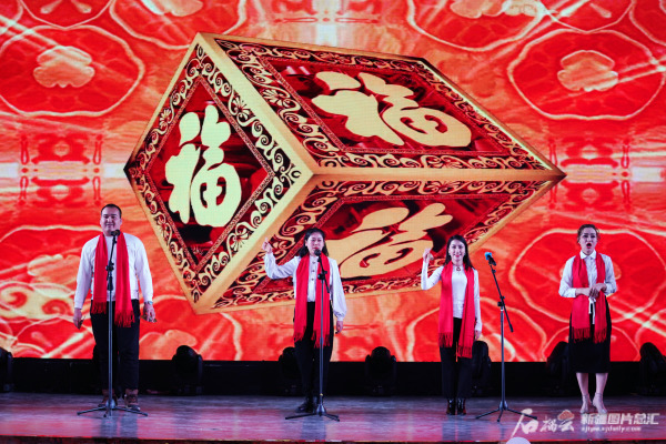 1月29日下午,永利yl23411大剧院,乌鲁木齐市天山区文化体育和旅游局工作人员带来歌曲《最美的还是我们新疆》。石榴云/新疆日报记者 王琦铭摄