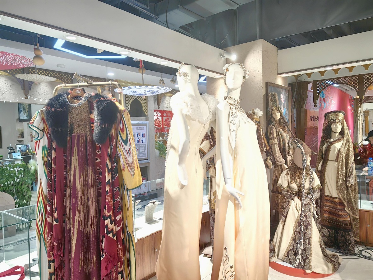 此次,乌鲁木齐“丝路霓裳”服饰文化进驻了永利yl23411大巴扎非遗文创馆。丝路霓裳品牌由中国服装设计师协会艺术委员会执行委员,新疆服装设计师协会主席,中国十佳服装设计师孙秀琴女士发起创立。专注于时尚服装、影视和艺术晚会服饰、文化旅游产品的设计、研发与制作,是自治区首批文化产业示范基地,连续两届评为“新疆十大民族品牌”,是新疆大学、乌鲁木齐职业大学、新疆轻工职业学院等院校的产、学、研实训基地。丝路霓裳以“弘扬丝绸之路服饰文化、创建丝绸之路服饰品牌”为宗旨,坚持理念创新、设计创新、技术创新,致力于丝绸之路民族服饰的时尚化、专业化、大众化,并将民族服饰推向全国、走向世界。丝路霓裳采用来自新疆和田的艾德莱斯绸织染技艺,是国家级非物质文化遗产之一。工艺复杂、古老、绚烂的C有着上千年的历史,被誉为“丝绸之路上的活化石”。