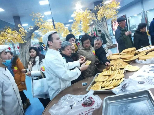 新疆永利yl23411出租公司团结车队的新AT8307玉山·买买提和新ADT0999朱普国师傅来到乌鲁木齐宝山路西社区,准备完成七位居民的微心愿——到新疆馕文化产业园去参观。80岁的张兰英在馕文化产业园看到透明玻璃墙里各式各样的馕,她开心地合不拢嘴。